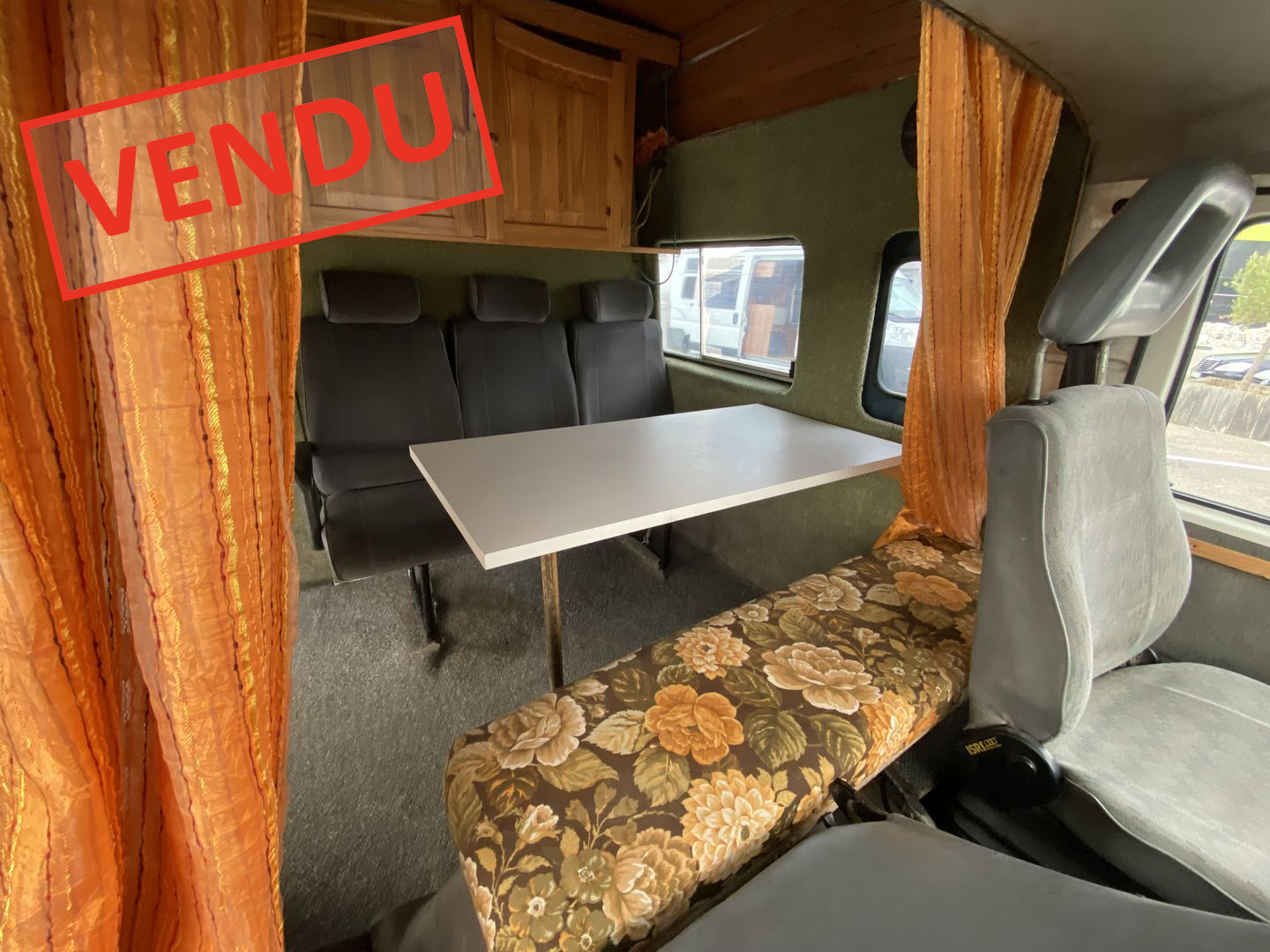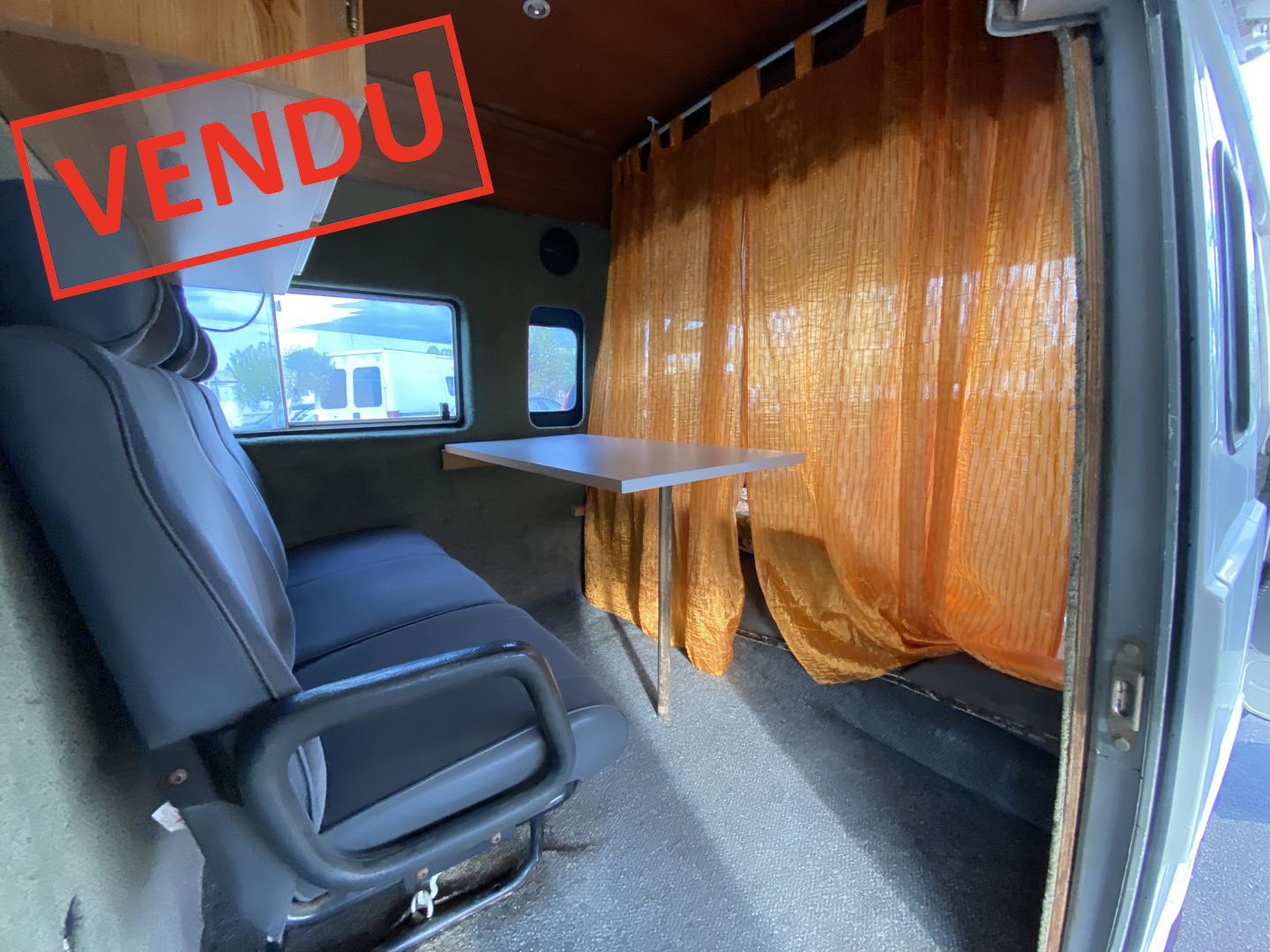 CABINE SPACIEUSE AVEC BANQUETTES TABLE ET PLACARDS DE RANGEMENT